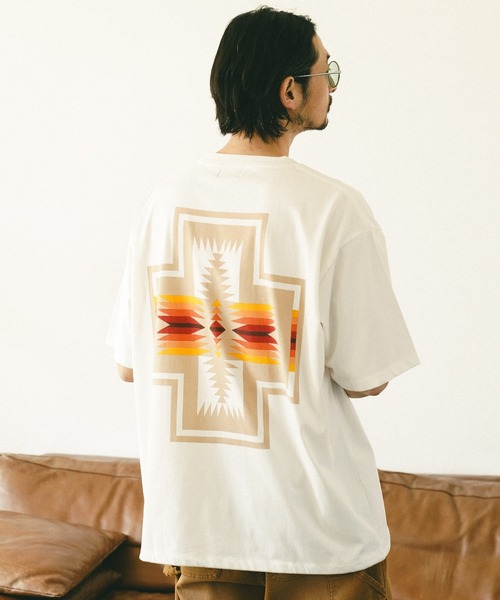 ーーー アメリカで創業以来一貫して伝統的な工程で製造している老舗ブランド<PENDLETON>(ペンドルトン)に機能素材を使用したネイティブ・アメリカンのモチーフのバックプリントTシャツを別注。 伝統的なネイティブ・アメリカンのモチーフの「Harding」、「Harding Star」をバックプリントで施しました。 表側には綿糸を、裏側にはポリエステル糸を使用したTCプレーティング生地は滑らかな肌触りと吸水速乾性が特徴です。 裾口にはドローコードを配することでシルエットに変化を付けることが可能です。 吸水速乾性のある生地とリラックス感のあるシルエットは夏に最適なTシャツです。 ーーー ホワイト系その他、ホワイト系その他2はWEB限定カラーです。 ※屋外での撮影画像は光の加減で実際の商品より明るく見えたり、風合いが異なって見える場合がございます。 商品の色味はスタジオ撮影の画像を参考にして下さい。 【PENDLETON(ペンドルトン)】 1909年オレゴン州ペンドルトンの町に自社紡績工場を創業し、 ネイティブアメリカン向けのトレーディングブランケットの生産を開始しました。 ウールブランケットやシャツに代表されるPENDLETON(ペンドルトン)ブランドはアメリカの良心と呼ばれています。 PENDLETON(ペンドルトン)の全ての商品に縫い付けられた織りネーム。ここには「WARRANTED TO BE A PENDLETON(ペンドルトン製品であることを保証する)」と書かれています。 これこそ今も昔も変わらないペンドルトンの誇りなのです。