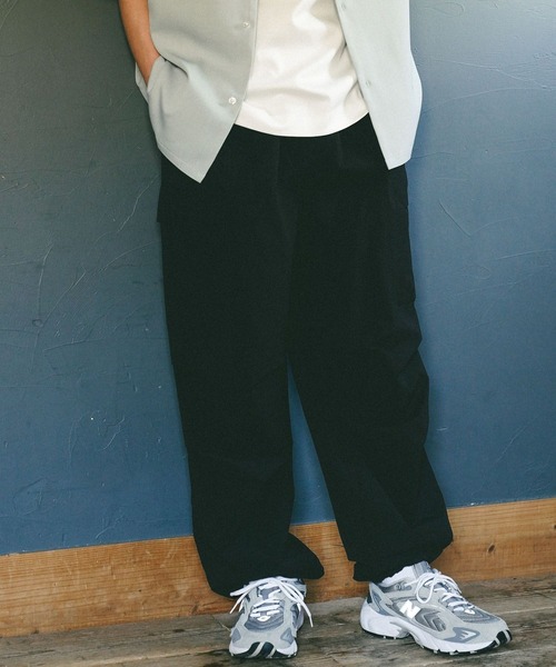 ーーー POINT [1] 2WAYによるストレスフリーなアクティブパンツ [2] シルエット変更可能で広い汎用性 [3] 程よくボリュームを抑えた着回し力の高いアイテム。 ーーー [fabric] タテヨコ伸びる2WAYストレッチのナイロン生地を使用。 [design] フラップが切替に流し込まれたスッキリとした、カーゴポケットが特徴的なパンツ。 ストレッチが効いてウエストベルトもイージーパンツ仕様なので穿き心地が良い。 裾にはゴムスピンドル付きで、絞る事でシルエット調節が可能。 太すぎないテーパードシルエットなので、トレンドに左右されず長く着やすいシルエット。 [styling] デザイン性のあるボトムなので、シンプルなトップスとの合わせが◎ トップスをタックインしてキレイめに着こなすのもおすすめ。 ※屋外での撮影画像は光の加減で実際の商品より明るく見えたり、風合いが異なって見える場合がございます。 商品の色味はスタジオ撮影の画像を参考にして下さい。 ------------------------------------- ≪お買い物をよりお楽しみいただくために≫ ◆商品のお気に入り登録(ハートマークをクリック) 完売カラーの再入荷通知や、完売間近の通知、セールの通知も受けることができます。 ◆ブランドのお気に入り登録 新商品や再入荷など、いち早くブランドのお得な情報を受け取ることができます。 -------------------------------------