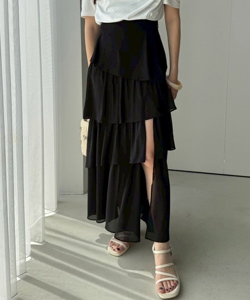 ~NICECLAUP 2025SS Summer Collection 動きに合わせて揺れる、たっぷりと重ねたフリルが女性らしいティアードスカート ウエストはゴム仕様で着心地が楽チンなのも嬉しいポイント◎ スリットが入っており、程よい肌見せが叶います。 合わせるトップス次第で、カジュアルからフェミニンまで幅広いコーデに合わせられます。 ■オススメコーディネート きれいめなブラウスからカジュアルなTシャツやスウェットまで、 どんなテイストとも相性抜群です。 ティアードが目を惹くデザインなので、シンプルめのトップスでも 華やかなスタイリングに仕上がります。 ------------- 裏地:あり 伸縮性:ウエストあり 生地の厚さ:普通 生地の重さ:普通 洗濯:手洗い/ドライ ------------- ※サンプルでの撮影のため、実際のものと仕様や色が異なる場合があります。 ※室内、室外での撮影のため実際より明るく映っていたり、暗く映っていたりする場合がございます。 ※品質表示を必ずご確認下さい。 【商品のお気に入り登録】 完売カラーの再入荷や、ラスト1点のお知らせ、セールの通知を受け取ることができます。 【ブランドのお気に入り登録】 新作入荷や再入荷情報など、ブランドの情報をいち早くお届けします。 ぜひご登録ください♪ 2025SS