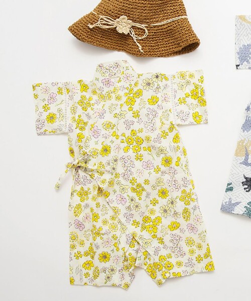 普段使いにもおすすめなベビー甚平が初登場!綿100%素材、ところどころに太い糸を織り込むことで清涼感のある麻風の生地になっています。お祭りはもちろん暑い季節の部屋着や寝間着として。めんどうな前開きのボタン仕様ではなく、脇のリボンで着脱が可能。気軽にお着替えできる甚平です。汗をかきやすい夏にぴったりのアイテムです。■ガーベラストライプ柄【キッズ浴衣】とおそろい柄。シックなカラーのストライプ柄にカラフルなガーベラの花をあしらったスタイリッシュな雰囲気のデザインです。■イエローボタニカル柄【キッズ浴衣】とおそろい柄。ブランシェスらしい優しい色合いのボタニカル柄です。上品な印象を与えてくれるデザインです。■恐竜柄【キッズ甚平】とおそろい柄。恐竜柄とモダンな小紋柄を絶妙に組み合わせたデザインです。男の子のだいすきな恐竜柄で夏のイベントが待ち遠しくなりそうです。■麻の葉柄【キッズ甚平】【キッズ浴衣】とおそろいの柄です。レトロモダンな麻の葉柄はナチュラルな風合いで流行に左右されず長く着用して頂けます。麻の葉には、子どもの成長を願う、魔除けといった意味を持つ柄です。-----素材:本体部分 綿100%伸縮性:なし※モデル着用写真についてはイメージの為、実際の 商品とカラーや仕様が異なる場合がございますので、 商品画像をご覧ください。※商品の色味につきまして、お客様のお使いのPCの モニター環境により実際のカラーと画像の色味が 違って見える場合が御座います。 予めご了承の上、ご注文下さい。※店頭・外での撮影画像は光の加減で、 実際の商品より明るく見える場合が御座います。子ども/子供/こども/子供服/キッズ/ジュニア/男の子/女の子