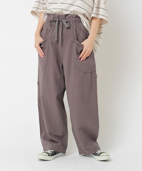 シーンを問わず活躍するワークテイストなパンツ 常にリラックスした履き心地を感じていただける、カーペンター(大工さん)からインスピレーションした日常からアウトドアまで、シーンを問わず活躍するワークテイストなパンツです。 ■POINT■ シルエットはルーズバギー(バギー/baggyとは袋のようにぶかぶかで太いという意味)、丸みのあるワイドなラインが特徴です。 後身はヒップサイズとヒップ下のあまり具合などを削り、少しメンズっぽさを感じさせるようなスッキリしたバックスタイルに仕上げました。 気になる太ももや腰回りはゆとり感と視覚効果でカバーして、履く人を選びません。 ウエストは様々なサイズのお客様に対応して頂けるゴムのドロスト仕様。 トップスをインした時のポイントとなるハイウエスト風のデザインです。 リラックスした履き心地のイージーパンツです。 前後に大きなポケットが沢山あり実用的なのがポイント。 様々な物を入れることが出来ます。 手ぶらで快適に過ごして頂ける、便利で機能的なデザインになっています。 ■生地■ 軽さと柔らかさが特徴の綿/麻ライトサージを使用しています。 麻は吸水/吸湿性と発散性に優れているため、綿100%より汗ばむ夏の時期も比較的快適に過ごせます。 とても心地良い風合いと、軽やかな履き心地を感じていただけます。 ■COLOR■ グーズグレー・バニラベージュ・アイスランドブルー 透け感:透けない 伸縮性:ややあり 裏地:なし ポケット:あり ウエストゴム:あり ---------------------------------------------------------------------- ◆◆お気に入り登録しておすすめ情報をゲットしよう◆◆ 【商品のお気に入り登録】 再入荷、残り1点、セール、タイムセール、クーポンなど、 いち早く受け取ることができます。 【ショップ・ブランドのお気に入り登録】 新商品、予約商品、再入荷、ショップのおすすめトピックスなど、 ショップ・ブランドの最新情報を受け取ることができます。 ---------------------------------------------------------------------- ※商品についている品質表示タグやアテンションタグを必ずご確認の上、着用、またはお取り扱い下さい。 ※画像の商品はサンプルです。 実際の商品と仕様、加工、サイズが若干異なる場合がございます。 ※撮影場所により、光の当たり具合で色味が異なって見える場合がございます。 商品写真はできる限り実物の色に近づけるようにしておりますが、実際の商品と色味が異なる場合がございます。 カラーは商品の掛け画像をご参照下さい。