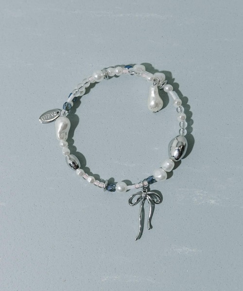 【ランダムに連なるパールとビーズ】 ●様々な素材やモチーフが並んだキュートなデザイン ●ワイヤーベースの留め具無しデザインが着脱しやすい ●シンプルなコーデのアクセントに 様々な形やサイズのパールやカラービーズがランダムに連なった、フェミニンな印象のブレスレット。 ニュアンス感あるリボンのチャームもワンポイントになり、手元のアクセントに最適なアイテムです。 パールの上品さにビーズやチャームの愛らしさが組み合わさり、大人カワイイ印象に。 【2025 Spring/Summer】【25SS】 ※メッキ製品(特に銀メッキ)は変色しやすいため、こまめなお手入れで防止してください。長期放置やスプレー香料などの同時使用は、特にお避けください。 ※メッキ製品は、アレルギー体質の方や体調が低下している方など、かぶれることがあります。肌に異常を感じた時はご使用をお止めいただき専門医にご相談ください。 ※アクセサリーは壊れやすいものです。取り扱いに注意していただき大切にご使用いただけるようお願い申し上げます。 総重量 : 約7.5g ※商品画像は、光の当たり具合やパソコンなどの閲覧環境により、実際の色味と異なって見える場合がございます。予めご了承ください。 ※商品の色味の目安は、商品単体の画像をご参照ください。 ▼お気に入り登録のおすすめ▼ お気に入り登録商品は、マイページにて現在の価格情報や在庫状況の確認が可能です。 お買い物リストの管理に是非ご利用ください。 -