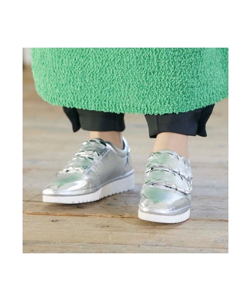 ダブルのベルトデザインが華やかなレザースニーカー。ツヤのあるソフトガラスやメタリックの素材感は存在感も抜群です。コーディネートのアクセント使いにも◎いつものコーディネートも一味違った印象に!スカートにもパンツにもマッチするデザインでデイリーユースに活躍してくれそうです。◇D'ICI ディッシィ◇素足を優しく包み込む、軽く・柔らかい履き心地。幅広・軽量・安定感…「歩きやすい」を叶える、ゆるやかで、自由で、シンプルなフォルム。上質な素材へのこだわり。上品さと軽快さをあわせもつ大人の女性へ向けた、歩く喜びを感じるブランド。※プラット製法(甲革・裏材・中敷き・巻材を縫い合わせ、スポンジと中底をくるむ製法)※MODE ET JACOMO モードエジャコモ DICI ディッシー■素材 :BL、WH・本革(ステアソフトガラス)+本革(ステアシワエナメル)/SV・本革(ピッグメタリック箔)+本革(ステアメタリック箔)#靴 #外反母趾 #内反 #旅行 #カジュアル #オールシーズン