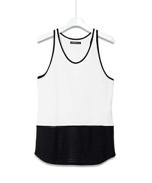 30/1ソフト天竺をベースに裾をメッシュ素材で切り替えたロングタンクトップです。 ■DIET BUTCHER SLIM SKIN■ 繊細で軽やかなマテリアルに重厚なディテールを加え、楽に着ても美しく、優雅でも遊びが存在する、デザインコンシャスな服を 大人が楽しめるスタイルで提案。ランウェイ・インスタレーション・映像と形式にとらわれない様々な形でコレクションを発表し続けている。