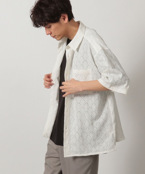 人気のレースシャツ。 透け感があり見た目にも涼しげでスタイルの主役になります。 落ち着いたカラーなので取り入れやすいのもポイントです。 【素材】 通気性もよくさらっとしていて夏に最適です。 【スタイリング】 カジュアル、キレイ目どちらでも着こなしの幅が広い一着です。