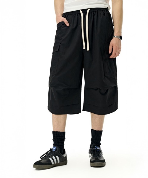 ■トレンドの半端丈にデザインされたカーゴワイドイージーパンツ パラシュートパンツにディティールを落とし込んだ半端丈パンツです。 カーゴポケットやニータックデザインがストリート映えするアイテム。 ウエストはゴムが入り、スピンドルでサイズ調整が可能なリラックス仕様のアイテムです。 タウンユースは勿論のことレジャーやアウトドアシーンでも活躍してくれるアイテムです。 ■シルエット リラックス感のあるゆるっとしたストレートシルエットです。 ハーフパンツとフルレングスパンツの間を取った半端丈アイテムです。 ■素材 ■ディティール ウエストにはゴムが入りスピンドルでサイズ調整して頂けます。 ★商品のお気に入り登録→【カートに入れる】右側の♡をクリック 完売カラーの再入荷通知や、ラスト1点の通知、セールの通知も受け取ることができます。 ※店頭及び屋外での撮影画像は、光の当たり具合で色味が違って見える場合があります。またご覧いただきますモニターや使用環境により実際の商品と多少色味が異なって表示される場合がございます。 予めご了承をお願いいたします。