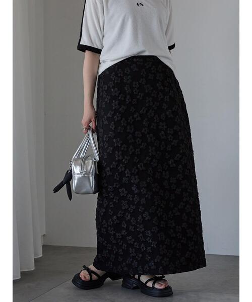 花模様のふくれジャカードで仕立てられたナロースカート。ぽこぽことした凹凸感のある生地が目を惹くデザイン。タイトなシルエットで上品な装いに決まり、甘すぎない大人の可愛らしさを演出してくれるアイテムです。※商品画像は、撮影環境やお客様のご利用のPC・スマートフォンのモニター環境などにより実物と色味に差異がある場合がございます。【その他採寸】F ウエスト:[後ゴム仕様]61cm★《お気に入り登録》でお得な情報をGET★① 商品ページ内のハートマークをクリック!② 以下通知が受け取れます!「再入荷」「ラスト1点」「特別セール」etc..\ブランド、ショップのお気に入りも是非!/