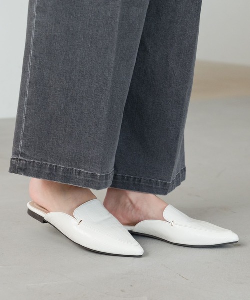 大人な足元を演出してくれる一足がお目見え さっと履いて出かけられるスリッパタイプのミュールローファー。 履き口の甲深デザインなので脱げにくいのが魅力的。 すっきりとシンプルに仕上げたデザインがぐっと大人っぽい足元を演出してくれます。 ポインテッドトゥなので、パンツスタイルや丈が長いスカートなどいろんなスタイリングに使えるのもポイントです。 ーーー
