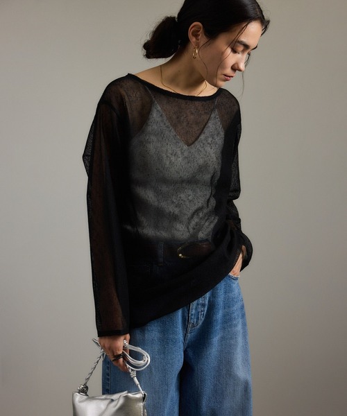 ロングシーズン対応。レイヤードスタイルにも活躍する、シワになりにくいシアーロンT■デザイン/シルエット 抜け感のある程よいゆとりがあるシルエットのプルオーバーです。 やや広めに開いたボートネックでデコルテラインが美しく女性らしさのあるデザイン。 気になる腰やヒップ周りも体型カバーしてくれます。 長袖ですが通気性のある素材なので暑い時期でもストレスなく着て頂けます。 ■素材 麻にポリエステルを混紡した清涼感のあるからみ織りの素材を使用。 麻のナチュラルさがありながら、ポリエステルを入れることで型崩れしにくく、シワにもなりくいのが特徴。 さらりとしたタッチで長袖でも涼やかに着て頂ける素材です。 ■コーディネート ベーシックなカラー展開でデニムなどカジュアルボトムから、プリントパンツなどとも相性良く着て頂けます。 シワにもなりにくく、旅行やレジャーにもおすすめ。 ■モデル身長:173cm 着用サイズ:F(ブラック着用) ■モデル身長:173cm 着用サイズ:F(キナリ着用) ーーーーーーーーーー 裏地:なし 光沢感:なし 透け感:あり 伸縮性:なし 生地の厚さ:やや薄手 ーーーーーーーーーー