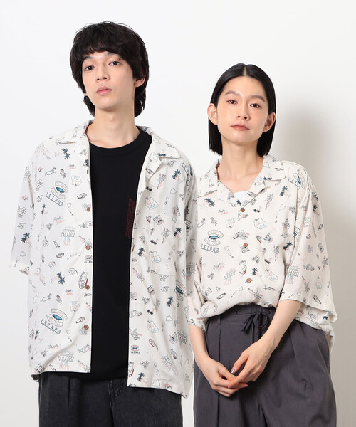 《デザイン》毎年好評のP&Yオリジナルのレーヨンアロハ柄プリントシャツです。プリントのテーマは「HAWAIAN DINNER(ハワイアンダイナー)」ハワイの街にある「PURPLE&YELLOW」という名前の架空のダイニングバーをイメージ。ネオンサインやカクテル、ヤシの木やフラダンサー、ヴィンテージのアメ車・・などダイニングバーにまつわるアイテムが描かれています。ネオン管風の手描きタッチの絵と少しくすんだ色あいにして「レトロポップ」なイメージに仕上げています。身頃は程よくゆとりのあるリラックスシルエット。一枚でも羽織りとしても使っていただけます。《素材》レーヨンアロハ柄プリントレーヨン100%の薄手の生地にP&Yオリジナルのアロハ柄をインクジェットプリントしています。インクジェットプリントにすることで、プリントが硬くならずにサラッとした表面感で仕上げることができます。レーヨンはヴィンテージのような独特の落ち感とドレープ性が特徴で、真夏でも快適に着ていただけるように薄手に仕上げています。裏地:無し伸縮性:無し光沢感:無し生地の厚み:普通※画像の商品はサンプルとなりますので実際の商品と仕様、加工、サイズが若干異なる場合がございます。※こちらの商品はFIVE FOXes独自の採寸方法となっています。本サイトのサイズガイドと採寸方法が異なる場合がありますのでご了承ください。