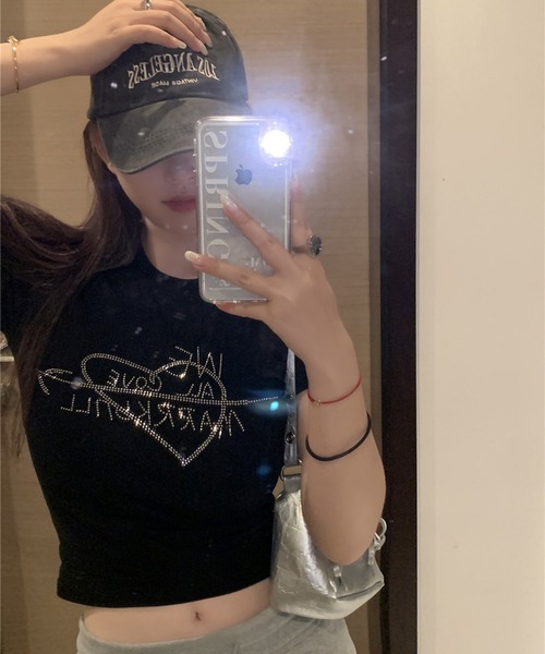【EIZZ/アイズ】Y2K キラキラロゴ ショート丈 半袖Tシャツ2000年代初頭を彷彿とさせるY2Kファッションにぴったりの、キラキラとしたラインストーンロゴが目を引くショート丈半袖Tシャツ♡トレンド感あふれるショート丈で、スタイルアップ効果も期待できます。胸元に施されたラインストーンのロゴは、動くたびに輝きを放ち、コーディネートの主役になること間違いなし。ハートモチーフが、可愛らしさとちょっぴりセクシーな雰囲気をプラスします。トレンドのショート丈は、ヘソ出しスタイルや、ハイウエストボトムスとの相性抜群。スタイルを良く見せてくれるだけでなく、軽やかな印象を与えます。ボディラインに程よくフィットするコンパクトなシルエットで、女性らしいラインを演出。すっきりと着こなせるので、重ね着のインナーとしても活躍します。柔らかく、肌触りの良い素材を使用しており、快適な着心地で、デイリーユースにも最適です。【EIZZ/アイズ ZOZOTOWN お買い物ガイド】▼商品をお気に入り登録▼完売商品の再入荷やラスト1点の通知、セール開始時にお知らせ!▼"EIZZ/アイズ"をお気に入りブランドに登録▼新商品や再入荷など、ブランド最新情報をいち早くお知らせ!是非、ご活用いただきお買い物をお楽しみください◎■撮影はサンプル品を使用しており実物とは若干異なる場合もございますので、ご了承ください。Y2K, Y2Kファッション, キラキラ, ラインストーン, ロゴT, プリントTシャツ, ショート丈, クロップド丈, チビT, 半袖, Tシャツ, カットソー, トップス, レディース, タイト, スリムフィット, へそ出し, 2000年代, 平成レトロ, ギャル, 韓国ファッション, トレンド, カジュアル, 夏