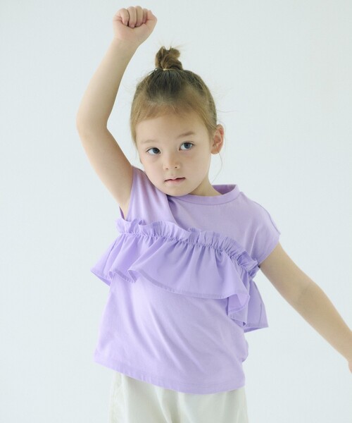 【スタメンシリーズ】-通学・公園からおでかけまで、 毎日のスタメンになるこども服- ボリュームのあるフリルが着映えするノースリーブTシャツ ■デザイン ボリュームのあるフリルがかわいいノースリーブTシャツ。 前後にデザインがあるのでどの角度から見てもかわいい1枚。 着映えするフェミニンなデザインでどんなボトム合わせでもスタイリングがきまります。 ■素材 身頃部分に「吸水速乾」「接触冷感」のコットン素材を使用。 着心地よく、汗をかいたり洗濯回数の増える時期に嬉しい素材です。 ■コーディネート デニムパンツやカーゴパンツなどボーイッシュなボトム合わせから、ギャザースカートにインした甘めのスタイルも◎ #春服,#春物,#夏服,#夏物,#25SS,#スタメン,#GLRスタメン,#通園,#通学,#デイリー,#カジュアル,#着回し,#お着替え ============================ 裏地:なし 透け感:オフホワイトややあり 光沢感:なし 機能性:身頃部分のみ吸水速乾、接触冷感 ケア方法:洗濯機洗い可 ============================ <スタメンシリーズとは> お子様が「着たい・着心地がいい」、ママ・パパが「着て欲しい・お手入れラクチン・何枚も揃えたい」と思えるような、親子両想いのアイテムを目指し、 ママ・パパのリアルなお声をお聞きするための座談会を重ねて開発した、親子の毎日をクローゼットからごきげんにしてくれるこども服です。 【注意事項】 ※画像の商品はサンプルです。 ※商品を使用前に、タグ等に記載されている「取り扱い上の注意書き」、「洗濯表示」を必ずご確認ください。 ※商品画像は、光の当たり具合やパソコンなどの閲覧環境により、実際の色味と異なって見える場合がございます。あらかじめご了承ください。 ※商品の色味の目安は、商品単体の画像をご参照ください。 店舗へお問い合わせの際は、全国のgreen label relaxing各店舗まで下記の品名/品番をお申し付けください。 品名:◎◆ HCフリルT 品番:38171992063