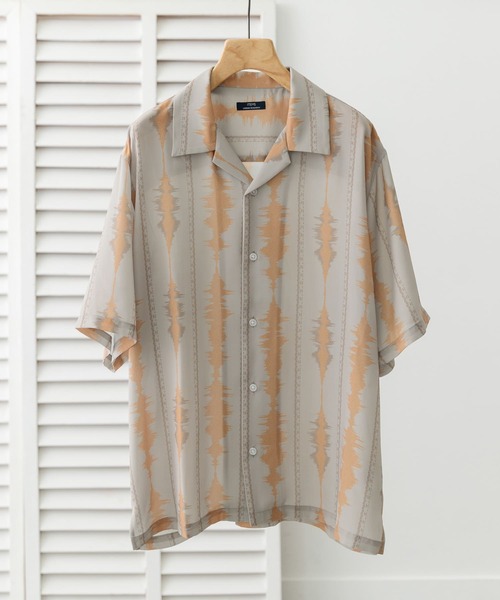 グラフィカルに魅せる。デジタルストライプデザインデジタルストライプ柄が、印象的でアクセントに。グラフィカルで洗練されたプリントは、スタイリングに都会的なエッジをプラス。リラックスシルエットと軽やかな素材で、快適な着心地も兼ね備えています。オープンカラーとゆとりのあるサイジングで、トレンドの抜け感もプラス。【2025spring/summer】 【25SS】※この商品は、摩擦や引っかけなど力が加わることによっても糸反転することがありますが素材の特徴としてご了承ください。※商品画像は、光の当たり具合やパソコンなどの閲覧環境により、実際の色味と異なって見える場合がございます。予めご了承ください。※商品の色味の目安は、商品単体の画像をご参照ください。▼お気に入り登録のおすすめ▼お気に入り登録商品は、マイページにて現在の価格情報や在庫状況の確認が可能です。お買い物リストの管理に是非ご利用ください。素材感透け感 : ややあり(GRY, MOC)伸縮性 : なし裏地 : なし光沢 : なしポケット : なしML