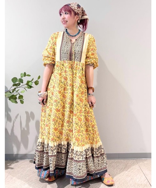 インドの伝統的なボタニカル柄をデジタルプリントで表現した、華やかなティアードワンピース。綿麻生地で上品な素材感。胸元のリボン使いもポイント。ふわりとしたボリューム感のあるシルエットで、女性らしさを引き立てます。・袖口ゴム入り。・サイドポケットなし。※こちらの商品は1点1点職人による手作りとなります。その為、生地の取り方により柄の配置や形・色合いなど若干異なる場合がございます。あらかじめご了承ください。※屋外での撮影画像は、光の当たり具合で色味・カラーが違って見える場合がございます。商品のカラーは、スタジオ撮影の画像をご参照ください。Amina Collection Co.,LTD.