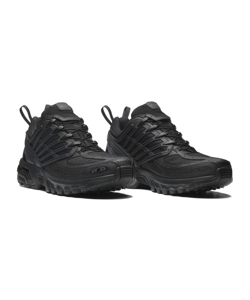 ACS Pro GORE-TEX は、冬場の悪天候に対応する GORE-TEX 防水メンブレンと、安定性を高める Agile Chassis System の採用で、トレイルの歴史に根ざした定番を機能的に進化させた典型的なテクニカルフットウェアです。