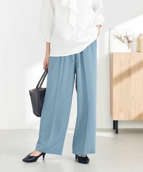 ◆大人気の美ラクるパンツ◆ 夏に嬉しい機能を詰め込んだ新素材で登場 【デザイン】 ・美しくラクな履き心地にこだわった美ラクるパンツ ・程よい太さのワイドシルエットで美脚見え ・ウエストは総ゴム仕様でストレスフリー&履き心地楽ちん ・お腹周りはギャザーで体型カバーが叶います ・ストレッチ素材で動きやすい ・センタープレスで脚長効果も◎ ・きちんと見えする素材で通勤シーンにも対応 ・好みで選べるカラバリ&ウエスト仕様&シルエット ・アイボリーとピスタチオグリーンはWEB限定カラーです 【素材】 ・夏にうれしい接触冷感&UVカット機能付き ・雨の日や夏場も安心の吸水速乾素材 ・ご自宅の洗濯機で洗えるのでケアも楽 ・履いても洗ってもしわが気にならないイージーケア ・ストレッチが効いたさらっとした肌触りの良い素材 【コーディネート】 カジュアルなTシャツからフェミニンなブラウスまで、着こなしの幅が広いアイテム。 Tシャツやサマーニット合わせなど シンプルになりがちなコーデも簡単に着映える旬のカラーもご用意しております。 ベーシックカラーは汎用性抜群で通勤服として愛用している方多数! 同素材ブラウスとのセットアップ着用もおすすめ。 【美脚シルエットの6つのポイント】 ①穿いて実感!美設計シルエット ②XS~XLまでの幅広いサイズ展開 ③ウエストゴムで楽な穿き心地 ④洗濯機で洗えてお手入れラクラク ⑤ストレッチ素材で快適な履き心地 ⑥着回し力抜群!幅広いシーンに対応◎ 【スタッフ着用コメント】 普段SサイズかMサイズを着用していて こちらはSサイズでちょうどよかったです。 Mサイズとはき比べましたが全体的なシルエットがSのほうが スッキリ見えたのでSサイズにしました。 ウエストの紐で調節して穿けるので安心です◎ さらっとした肌触りと落ち感のある素材でやみつきになるはき心地です。 (スタッフ身長:159cm/着用サイズ:S) 【同素材シリーズ】 ◆美ラクるイージーテーパードパンツ:K2LGA14044 ◆美ラクるイージーワイドパンツ:K2LGA15049 ◆美ラクるスッキリ見えテーパードパンツ:K2LGA16044 ◆美ラクるスッキリ見えワイドパンツ:K2LGA17049 ◆バックタック美ラクるブラウス:K2BGA13049 ◆美ラクるハーフスリーブジャケット:K2JGA10079 ◆バックヨークノースリーブワンピース:K2EHA17089 【夏の美ラクるパンツシリーズ】 ◆美ラクるスッキリ見えテーパードパンツ:K2LIA16044 ◆美ラクるスッキリ見えワイドパンツ:K2LIA17049 ◆美ラクるスッキリ見えストライプテーパードパンツ:K2LHA31044 ◆美ラクるスッキリ見えストライプワイドパンツ:K2LHA32049 ※販売時期により素材が異なります -------------------- 透け感:なし 裏地:アイボリー/グレージュのみあり 伸縮性:あり 光沢感:なし 生地の厚さ:薄手 -------------------- ≪お気に入り登録機能の使い方≫ ■商品のお気に入り登録(ハートマークをクリック) 再入荷通知や値下げ等、お得なご案内を受けることができます。 -------------------- ※商品画像は、光の当たり具合やパソコンなどの閲覧環境により 実際の色味と異なって見える場合がございます。 商品の色味の目安は商品単体の画像をご参照ください。 ※34(XSサイズ)・42(XLサイズ)はWEB・一部限定店舗での販売です。