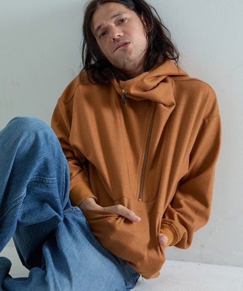 「これずっとやってみたかったアイテム」という長年の憧れから生まれた一着です。イギリス軍のガスプロテクトジャケットをサンプリングし、現代的な解釈で蘇らせた意欲作。特筆すべきは、大きな顔をスッポリ隠すほどの個性的な形状のフードというオリジナルの最大の特徴を継承しながらも、素材選びに新たな視点を加えた点です。ウールのカットソーという贅沢な素材を採用し、ミリタリーウェアの実用性とモダンな質感、さらにはスポーティーな要素を絶妙に融合させました。この素材選択により、歴史的なデザインに現代的な快適さと洗練を加え、ビンテージミリタリーの枠を超えた新しいアイテムとして生まれ変わらせています。機能面でも妥協はなく、裾にはドローコードを備え、シルエットの微調整が可能。このドローコードは伸縮する仕様のため、絞ったままでの着脱ができるという実用的な工夫も施されています。この機能により、カジュアルスタイルでの着崩しから、きれいめコーディネートでのすっきりとしたシルエットまで、様々な着こなしのバリエーションを楽しむことができます。ミリタリー、スポーツ、コンテンポラリーと異なる要素を高次元で融合させたこのアイテムは、従来の枠に収まらない新しいスタイルを提案し、大人のワードローブに独自の存在感をもたらす頼れる一着です。31:CAMEL :H175cmのモデルが48サイズを着用35:BR :H175cmのモデルが48サイズを着用05:BK :H175cmのモデルが48サイズを着用