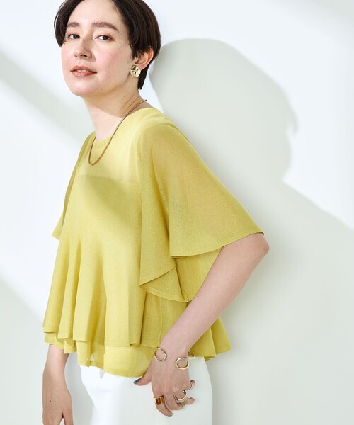 ◇25SS◇ NOLLEY'S sophi ◆Point ・麻のようなナチュラルな風合いのある涼し気なサマーニット ・立体的なフレアを胸上から2段入れることで透け感を抑え、華やかさもプラス ・袖も二の腕が隠れるフレア袖で、風通しも良く、涼しい1枚 ・胸元は程よく透け感を出し、大人っぽさを演出 ・ボトムによっては、下の段のフリルのみインにすることも可能 ・ショート丈で、タイトスカートやワイドパンツとバランス良く着こなせるアイテム ●お取扱い上のご注意● 末永くご愛用頂くために、アテンションタグを必ずご確認の上、着用又はお取り扱い下さい。 気になる商品は、お気に入り登録がオススメです! クーポン情報、入荷情報が、通知されるようになります。 ※店頭及び屋外での撮影画像は、光の当たり具合で色味が違って見える場合があります。商品の色味は、スタジオ撮影の画像をご参照下さい。 ※商品画像に関しては出来る限り忠実に表示出来るよう努めておりますが、お客様がご利用のモニターの設定及び特性により、実際の商品と比較し色味に若干の誤差が生じる場合があります。 ※画像の商品はサンプルとなりますので実際の商品と仕様、加工、サイズが若干異なる場合がございます。