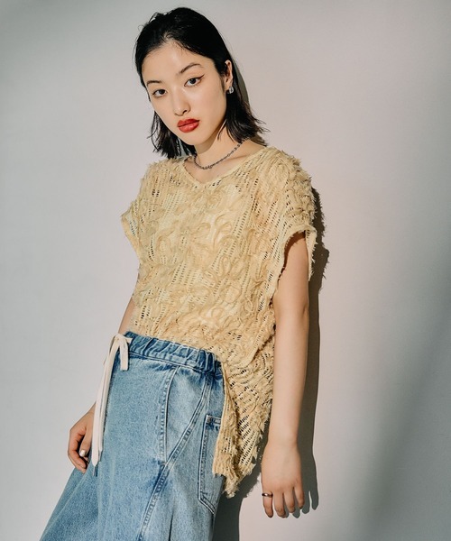 人気のニュアンス柄トップスからフレンチスリーブが登場!【デザイン】透け感が女性らしいレーストップスです。Vネック仕様でデコルテが綺麗に見え、涼しげな雰囲気に。着丈も長めなので安心感も◎【スタイリング】・落ち感のあるボトムと合わせるのがおすすめです。・デニムパンツと合わせて大人カジュアルスタイルも◎---------------------------------------------------【気になる商品はお気に入り登録がおすすめ!】・在庫残りわずか・再入荷・セールの情報などの通知を受け取ることができます。気になる商品は♡をクリックして、「お気に入り登録」しましょう!【ショップ・ブランドのお気に入り登録も!】新商品や再入荷、セール、クーポンの配布など、いち早くお得な情報を受け取ることができます。---------------------------------------------------