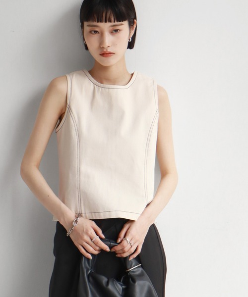 トレンド感のあるルックス 絶妙なバランスでミニマルなデザイン 同シリーズのパンツ【NG25SS021】と セットアップコーディネートもおすすめ。 ◇DESIGN ・配色ステッチのデザインが目を惹くノースリーブトップス。 ・コンパクトな丈感のバランスで理想的に引き立てるデザインが魅力的。 ・クルーネックで首元もすっきり見えて、務歯隠しのジッパーで脱ぎ着も楽々。 ・すっきり着られるノースリーブタイプで、大人の肌見せも叶う。 ・1枚着でもインナー使いでも着回し力の高さが嬉しいアイテム。 ◇FABRIC ・ナチュラルな質感が特長的なコットン天竺生地を採用。 ・着心地の良い滑らかな肌触りで、快適な着心地。 ◇STYLING ・デニムやワイドタックパンツと合わせて、カジュアルながらも大人っぽいスタイリングに。 ・一枚着としてはもちろん、インナーにTシャツやカットソーのトップスを合わせたレイヤードスタイルもおすすめです。 ・幅広いコーディネートに万能な一枚です。 【NOGLE/ノグル】 上品さと遊び心をもちながら、 変わらずに心地よく着続けられるもの。 ■公式インスタグラム @nogle_official ★商品のお気に入り登録→【カートに入れる】右側のハートマークをクリック 完売カラーの再入荷通知や、ラスト1点の通知、セールの通知も受け取ることができます。 ※店頭及び屋外での撮影画像は、光の当たり具合で色味が違って見える場合があります。またご覧いただきますモニターや使用環境により実際の商品と多少色味が異なって表示される場合がございます。 予めご了承をお願いいたします。