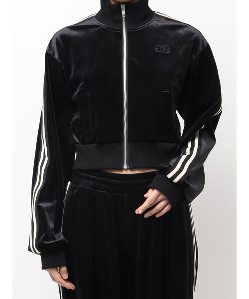GYDA(ジェイダ)の「SymmetryGYDAベロアトラックジャケット(ブルゾン・レディース・ブラック/ベージュ・F)」の1枚目の写真