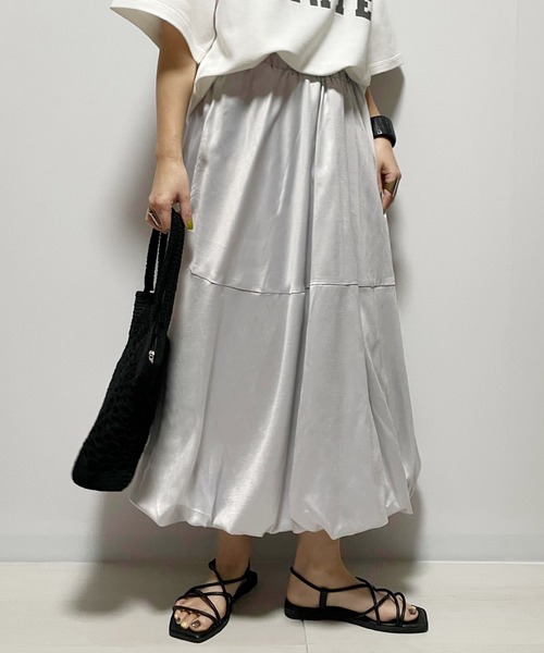 ◆シャイニー素材がトレンド感たっぷり◆【ディテール】スタイルアップ効果のあるバルーンスカート。ウエストはゴム仕様で楽ちんな着心地。【ファブリック】トレンド感のある箔プリント素材でコーデのアクセントに使えます。【スタイリング】ふんわりとした個性派シルエットはシンプルTに合わせるだけでおしゃれ見えします。さらりと着られてデイリーユースにぴったりな一枚です。
