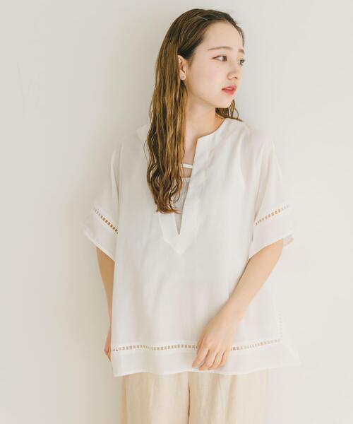 ハンカチのようなシルエットが印象的なレースブラウス。 二の腕をしっかりカバーしてくれるデザインで、気になる部分をさりげなくカモフラージュ。上品なレース使いが、大人の女性にぴったりの華やかさを演出してくれます。ベーシックで着まわしやすいブラックとホワイトの2色展開。ご家庭で洗濯可能なイージーケア仕様で、お手入れも簡単なのが嬉しいポイントです。普段使いはもちろん、きれいめなコーデにもおすすめの一着です。 【2025 Spring/Summer】【25SS】 ※商品画像は、光の当たり具合やパソコンなどの閲覧環境により、実際の色味と異なって見える場合がございます。予めご了承ください。 ※商品の色味の目安は、商品単体の画像をご参照ください。 ▼お気に入り登録のおすすめ▼ お気に入り登録商品は、マイページにて現在の価格情報や在庫状況の確認が可能です。 お買い物リストの管理に是非ご利用下さい。 素材感 透け感 : あり(WHT) 伸縮性 : なし 裏地 : なし 光沢 : ややあり ポケット : なし FREE