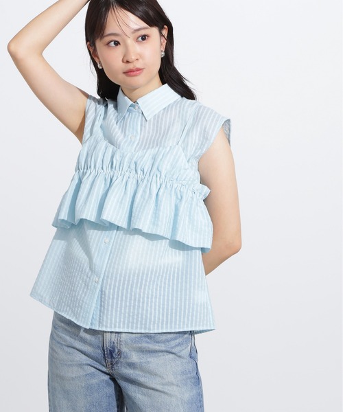 ビスチェとのSETで着こなしがこなれる、嬉しいセットアイテムです。表面感のある素材のため、それぞれ単品で使ってもこなれ感のある印象で着ていただけます。シャツはフレンチスリーブでさりげなく二の腕をカバー出来、襟付きなのでオフィスシーンにも活躍。ビスチェはややバルーンシルエットが今っぽい印象のデザインで、Tシャツやニットとのレイヤードにもおすすめです。<素材>表面感のあるサッカーストライプ素材を使用しています。<詳細>仕様・ビスチェは開閉なし、ブラウスは前ボタン裏地・ビスチェはあり、ブラウスはなし透け感・オフカラーのみややあり / 光沢・なし / 伸縮性・なし生地の厚さ・普通●取り扱いについては、商品についている品質表示でご確認ください。●撮影はサンプル商品で行っている為、仕様とサイズが異なる場合がございます。●スタジオ及び屋外で撮影した着用画像は、光の当たり具合やご覧のモニターによって色味が違って見える場合があります。予めご了承ください。●生産時期により色・素材・サイズ感など多少異なる場合がございます。予めご了承ください。≪お買い物をよりお楽しみいただくために!≫・「商品のお気に入り登録」再入荷通知や、ラストの通知、セール通知も受け取ることができます。・「ブランドのお気に入り登録」新商品や再入荷をはじめ、タイムセールやクーポンなどいち早くブランドお得な情報を受け取ることができます。
