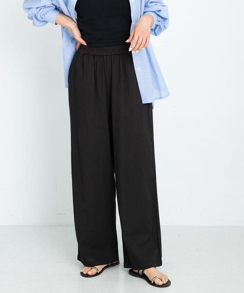 着心地も抜群な高機能イージーパンツ インド生産特有の柔らかな肌触りと、吸水性・通気性にも優れたコットン素材を使用したパンツ。 ウエストはオールゴム仕様で楽な穿き心地が魅力です◎ 裏地にもコットン100%素材を使用しているため透け感も気にならず、肌への張り付きも気になりません。 POINT ・選べる2サイズ展開 ・豊富なカラー展開 ・洗濯機でのお洗濯が可能 COORDINATE 広がりすぎずないストレートワイドなシルエットであらゆる形のトップスとも好相性◎ 【2025 Spring/Summer】【25SS】 ※この商品はインドで素材調達、縫製を行っています。素材の特性上、多少の色差、織ムラ、フシなどがあります。インド製品独特の風合いをお楽しみください。 ※この商品は、縫い目などに過度な力が加わることで滑脱(縫い目が滑って開いたり、縫いしろが抜ける)する場合がありますのでご着用の際はご注意ください。 ※その他お取り扱いに関しましては、商品に付属のアテンションタグをご覧ください。 ※商品画像は、光の当たり具合やパソコンなどの閲覧環境により、実際の色味と異なって見える場合がございます。予めご了承ください。 ※商品の色味の目安は、商品単体の画像をご参照ください。 ------------------------------------------------- [スタッフA] 年齢 : 40代, 身長 : 154cm, 体型 : 普通 普段の着用サイズ : S~M 【着用カラー/サイズ】 ブルー/36 【サイズ感】 ストレートで、ワイドなシルエットが、肌への張り付きがなく、体型カバーにもなります。私の身長で、36の丈がちょうど良かったです。 【素材感・着心地】 柔らかな肌触りで、通気性の良いコットン素材が使われており、涼しくお使いいただけます。ウエストはゴム仕様なので、ストレスフリーな穿き心地です。 【その他】 オンオフでもおすすめなベーシックカラーから、夏らしく映えるカラー展開のご用意があります。 3638