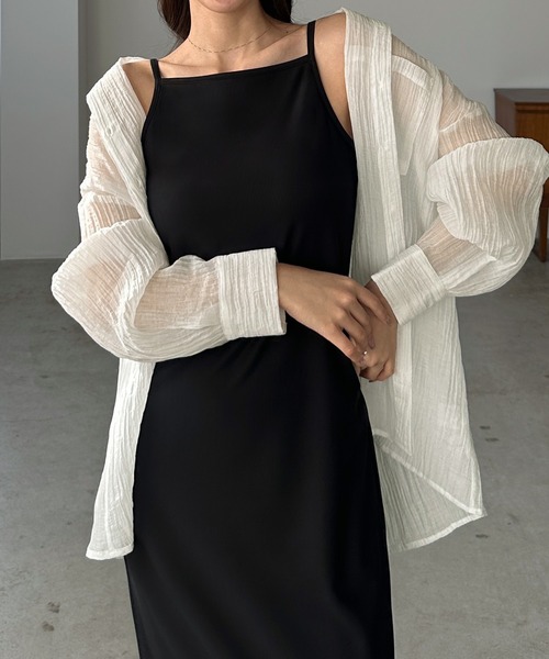 【Louere / ルエレ】ほんのり透け感がムード漂う楊柳シアーシャツ。■detailふんわりとした透け感で上品な肌見せを叶えてくれるシアーシャツ。左の胸ポケットがシンプルながらもコーデのアクセントになってくれます。また、バックはヨーク切替&タックデザインを入れ、後ろ姿も大人っぽくこなれた印象に♪ベーシックなデザインなので、いつものコーデにさっと合わせやすい着回し力抜群な万能itemです!■fabric軽やかでシアー感のある楊柳素材。…………………透け感:あり厚さ:薄手伸縮性:なし裏地:なしシワ:ややなりやすい推奨シーズン:3月~10月※インナーによって長いシーズン着用いただけます。※関東の平均気温を目安に推奨シーズンを記載しております。…………………※詳しいお手入れ方法は商品タグをご参照ください。Louereのサイズ展開は低身長から高身長、大きいサイズまで幅広い体型の方にご着用頂けるようサイズ間の寸法差を工夫しています。詳しくはサイズ詳細をご覧ください。【必ずご確認の上、ご検討ください】・通販の特性上、到着時には畳みシワが必ずございますのでご了承ください。・掲載している画像はできる限り実際の商品に近づけておりますが、モニター環境や照明等により、実際の色味と異なる場合がございます。・商品画像は撮影時の光や角度により、実物の色味と異なって見える場合がございます。・撮影はサンプル品を使用しており、表示のサイズ感も実物とは若干異なる場合がございますので、予めご了承ください。・生産時期により色・素材・サイズ感など多少異なる場合がございます。予めご了承ください。・濃色製品は、摩擦(特に湿った状態での摩擦)や、汗・雨などで濡れた際に他の衣料やバッグなどに色移りする場合がございます。淡色・白物との組み合わせや重ね着の際はご注意ください。・洗濯の際は、他の衣類と分けて単独で洗ってください。淡色・白物と一緒に洗うと色移りする恐れがあります。・洗濯の際はネット使用をおすすめいたします。漂白剤のご使用はお避けください。・タンブラー乾燥(乾燥機の使用)は、生地の縮みや型崩れ、風合いの変化の原因となるためお避けください。・素材の特性上、洗濯や着用により多少の縮み・ゆがみが生じる場合がございます。・天然素材(綿・麻・ウールなど)を使用している商品は、繊維の特性上ネップ(糸の節)や多少の織りムラが見られる場合がございますが、素材の風合いとしてお楽しみください。・ダメージ加工やウォッシュ加工が施されている商品は、1点ごとに風合いや色の出方が異なります。製品の特性としてご理解ください。・商品生地の特性により±1~2cm(ニット製品は±1〜3cm)程度の誤差が生じる場合がございます。・着用感には個人差がございます。サイズ表記は目安としてご参考ください。・プリント・刺繍・装飾のある商品は、摩擦や洗濯により多少のはがれ・毛羽立ちが生じる場合がございます。お取り扱いにはご注意ください。・直射日光や蛍光灯の光に長時間当たると、変色・退色する場合がございます。保管の際は光の当たらない場所で保管してください。・返品・交換規定は当サイトのヘルプをご参照ください。★お買いものをよりお楽しみいただく為に!★▼商品のお気に入り登録お気に入りアイテムの完売カラーの再入荷通知や、ラスト1点の通知、セールの通知も受け取ることができます。▼ブランドのお気に入り登録新商品や再入荷など、クーポン配布などのお得な情報を受け取ることができます。