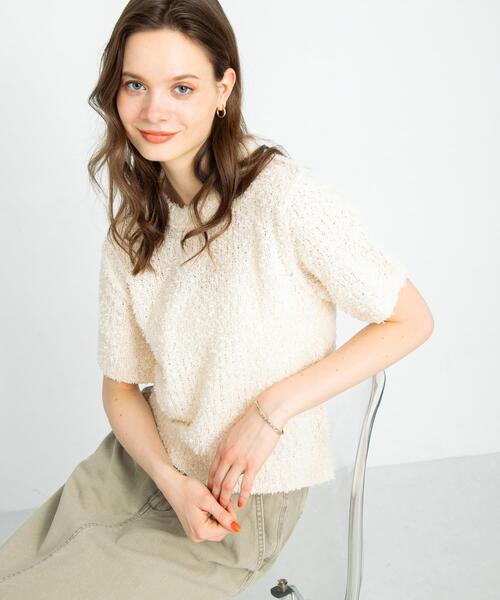 表情のあるファンシーヤーンがかわいいニットTシャツドライタッチな糸をゆるめに編み立てることで柔らかく涼しい着心地に仕上げました。シンプルなデザインながらも表情のある糸を使用し1枚でも着映えするアイテムになっています。POINT・1枚で着映えするアイテム・ご自宅で手洗い可能COORDINATEデニム合わせでヘルシーな着こなしがおすすめです。ベーシックなサイズ感なので、サロペットやキャミワンピのインナーにも◎【2025 Spring/Summer】【25SS】※この商品は素材及び編地の性質上、着用中、着脱時、及びアクセサリー等で引きつれ、引っ掛かり易い為、取扱いにはご注意ください。※この商品は、素材の特性上、着用の際ピリング(毛玉)が発生する場合があります。総重量 : 約230g※商品画像は、光の当たり具合やパソコンなどの閲覧環境により、実際の色味と異なって見える場合がございます。予めご了承ください。※商品の色味の目安は、商品単体の画像をご参照ください。▼お気に入り登録のおすすめ▼お気に入り登録商品は、マイページにて現在の価格情報や在庫状況の確認が可能です。 お買い物リストの管理に是非ご利用下さい。素材感透け感 : ややあり伸縮性 : あり裏地 : なし光沢 : なしポケット : なしFREE