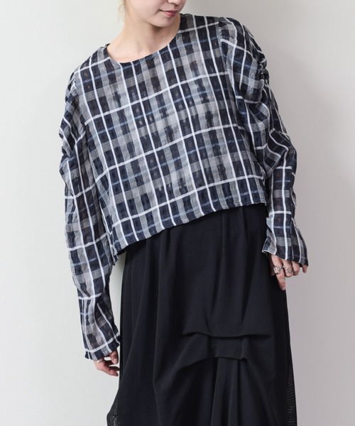 タックスリーブが映える、ジャガードトップス。 【Material】 落ち着きのあるチェックにジャガードで織られた生地が特徴のブラウス。 ジャガードらしい生地に立体感もあり高級感のでる特徴です。 【Design】 アームラインにタックを施し、程よくボリュームを持たせたスリーブデザイン。甘くなりすぎず、女性らしさを引き立てるバランスに仕上げました。1枚で存在感のあるトップスです。 【Size】 ボックスシルエットならではの、ゆったりとしたサイズ感。アームまわりにも余裕を持たせており、二の腕を自然にカバーしてくれます。身体のラインを拾いにくく、リラックスして着用いただけます。 【Styling point】 デニムパンツとサンダルを合わせた、夏らしいカジュアルスタイルがおすすめ。 シンプルなボトムと合わせるだけで、コーディネートが決まります。きれいめパンツやスカートと合わせれば、程よく品のある着こなしも楽しめます。 【商品特性】 透け感:あり 裏地:なし 伸縮性:なし 光沢感:なし 生地の厚さ:普通 ▼お気に入り登録 アイテムをお気に入り登録・・・再入荷やラスト1点、セールなどの情報をお知らせします! ブランドをお気に入り登録・・・新作や販売開始のお知らせを受け取れます! ※撮影時の光の加減やご使用の端末により、実際の色味と異なる場合がございます。あらかじめご了承くださいませ。