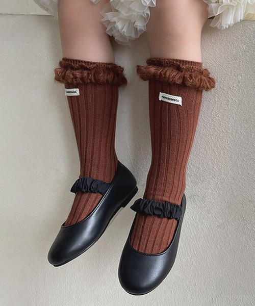 ふんわりとしたフリンジが可愛い、女の子用のリブニットソックスです。しっかりとした厚みとリブ編みのデザインで、足元をおしゃれに演出。履き口には柔らかなボリューム感のあるフリンジをあしらい、シンプルなコーディネートに程よいアクセントをプラスします。フォーマルスタイルからカジュアルコーデまで幅広く活躍できる、万能アイテムです。