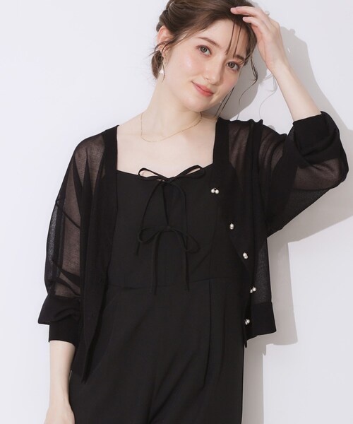 ダブルパール調釦がアクセントのシアーニットカーディ ~POINT~ ドロップショルダーで、袖口のパフ感が可愛いシルエットです 釦開閉時は、一粒ずつホールに押し込むように開閉してください 508-12018とのアンサンブル着用が可能です 夏の冷房対策や日焼け対策にもおすすめのアイテムです 【素材・機能】 程良い上品な透け感が特徴のLEVITA糸を使用しています 色によって杢調に出ていたり、シャイニー感が少し感じられます 繊細な素材のため、引っ掛かり等にご注意ください ※照明の関係により、実際よりも色味が違って見える場合があります。また、パソコン・スマートフォンなどの環境により、若干製品と画像のカラーが異なる場合もございます。 【スタッフコメント】 ・saori(153 )上品な透け感で高級感があり、さらりと羽織れるおすすめカーディガンです!きれいめなので通勤はもちろん、おでかけなどどんなスタイルとも相性よく着こなしが可能です◎ 【25SS NEW ARRIVAL】 【25SS NEW COLLECTION】 モデル情報:身長163cm B81 W56 H82 着用サイズ:38(M) 店舗へのお問い合わせ商品番号:508-32008 ●製品寸法: 38(M):着丈51cm B111cm 袖丈47cm 肩幅56cm 42(LL):着丈53cm B119cm 袖丈48cm 肩幅58cm 備考: