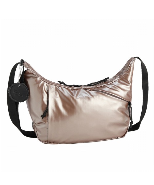 落ち着いたパール感のある素材を用いたカジュアルでシンプルなデザイン 軽量で、雨や汚れに強い素材を使用しています。 街歩きや自転車に乗る際など斜め掛けスタイルで快適、ボディショルダーバッグ。 ●メイン収納 中身が見えやすいメッシュファスナーポケットや出し入れしやすいオープンポケットなど 用途によって使い分けできるポケットが充実 ●ボトルホルダー 500mlペットボトルや、折りたたみ傘の収納に便利なボトルホルダー付き ●背面ポケット セキュリティー性が高く、出し入れしやすい背面ポケット。 ●フロントポケット 斜めとタテにフロントポケットが2つ 斜めフロントポケットには、鍵などを取り付けられるキーフック付き ●セットアップ機能 スーツケースなどのプルドライブハンドルに固定し走行時にバッグのふらつきを防ぐ機能 ●ショルダーベルトは、お好みの長さに調節可能 ●旅のお守りカナナチャーム 旅先でハッピーが生まれますように。そして帰ってきますように。 そんな願いを込めてお守りを付けました。 ---------------------- 機能詳細 <内装> ・メッシュファスナーポケット ・ボトルホルダー ・ポケット×2 <外装> ・斜めフロントポケット×1(キーフック) ・タテフロントポケット ・背面ポケット