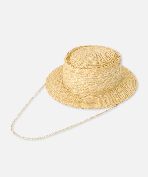 【allureville 2025 spring&summer】ナチュラルな風合いが特徴のチェーンハット。内側からチェーンが垂れ下がるデザイン。カジュアルになり過ぎないエレガントな印象のハットです。紫外線対策としてはもちろん、春夏スタイルに華やかさを添えてくれるアイテムです。チェーンは取り外し可能で、コーディネートに合わせてシンプルにもお使いいただけます。※照明の関係により、実際よりも色味が違って見える場合がございます。またパソコン・スマートフォンなどの環境により、製品と画像のカラーが異なる場合もございます。予めご了承ください。