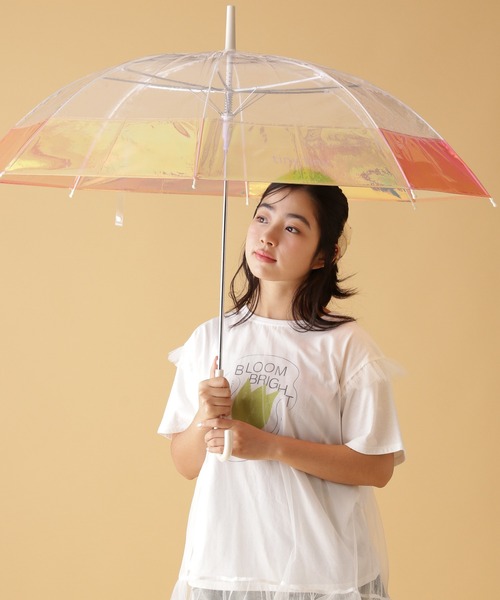 雨の日もオシャレを楽しみたい! 角度によって表情の変わるピンクオーロラが可愛いビニール傘。 開くたびに気分が上がりそうなデザインで、つい雨の日が待ち遠しくなりそう! 光が入りやすいクリア素材のため、周りが見えやすいのも便利なポイント。 暗くなりがちなレインコーデも、傘でアクセントをプラスするだけで明るい印象になります! 【tiny tiny(ティニーティニー)】 Feminine convenience stand スタイリストは、じぶんがいい。 tiny tinyはフェミニンテイストの服飾雑貨が揃う セルフスタイリストのためのコンビニスタンド。 コンパクトだけどたくさんの「好き」が詰まった空間で、立ち寄るといつも新しい「自分」のヒントがもらえる。 タイニーな「好き」の積み重ねが 毎日をハッピーに変えてくれる。 たったひとりのわたしらしさを作ってくれる。 今日も tiny tinyに寄って行きませんか? ※屋外の光や照明の当たり具合で、実際の商品の色味とカラー別画像の色味に違いが発生する場合がございます。商品の色味はスタジオ撮影の詳細画像にてご確認ください。 ※商品の色や質感を出来るだけ忠実に再現するよう心掛けていますが、実物と若干異なる場合がございます。