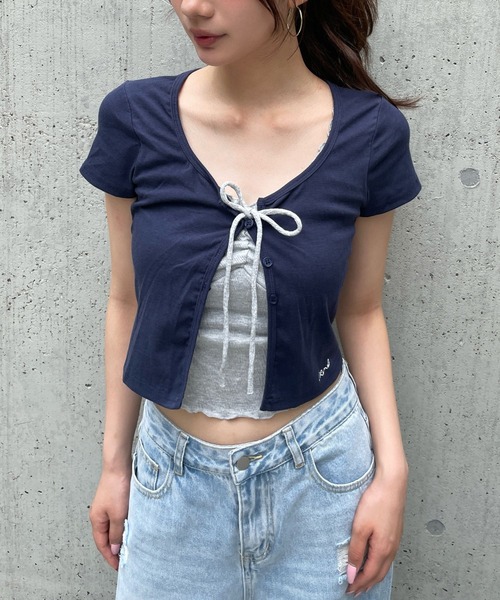 レイヤードでトレンドスタイル! ■POINT トレンドのレイヤード風デザインのトップス★ フリルとリボンデザインで、程よくガーリーな雰囲気に。 コンパクトなサイズ感ですが、伸縮性のある生地で着心地が良いです。 左裾にワンポイント刺繍を入れています。 ■STYLING カジュアルなボトムやデニムと合わせてストリートミックス風に着用するのがおすすめです。 ミニボトム合わせでもトレンド感のあるスタイリングになります! ■FABRIC 伸縮性のあるやわらかいカットソー生地を使用しています。 ーーーーーーー 透け感:透けない 伸縮性:あり 生地の厚さ:普通 裏地:なし ーーーーーーー ※こちらは参考情報となります。カラーにより多少の誤差がございます。 ■お手入れについて 洗濯:手洗い可 タンブル乾燥:不可 漂白:不可 自然乾燥:日陰の平干し アイロン:120℃まで可 クリーニング:可 ※詳細は製品のタグ情報をご確認ください。 < FOREVER21/ CONCEPT > 新しい価値観を表明するコミュニケーションテーマは「Wear No Filter」 '一人一人のリアルを、美化したり、ぼかしたりすることなく、着ることでむしろ、その人らしさが裸になっていく。 そのままを映し出すこと。それらが最も魅力的だと信じる、FOREVER21の合言葉。” 新生FOREVER21は、様々な現代的な価値観へのリスペクトと共鳴を、様々なクリエイションに表現していきます。 気になる商品は「お気に入り」登録がおすすめ! お気に入り登録商品は、マイページにて現在の価格情報や在庫状況の確認が可能です。 【注意事項】 ※実際の商品と色味、仕様、加工、サイズ、素材等が若干異なる場合がございます。 ※商品を使用前に、タグ等に記載されている「取り扱い上の注意書き」、「洗濯表示」を必ずご確認ください。 ※商品画像は、光の当たり具合やパソコンなどの閲覧環境により、実際の色味と異なって見える場合がございます。予めご了承ください。 ※商品の色味の目安は、商品単体の画像をご参照ください。