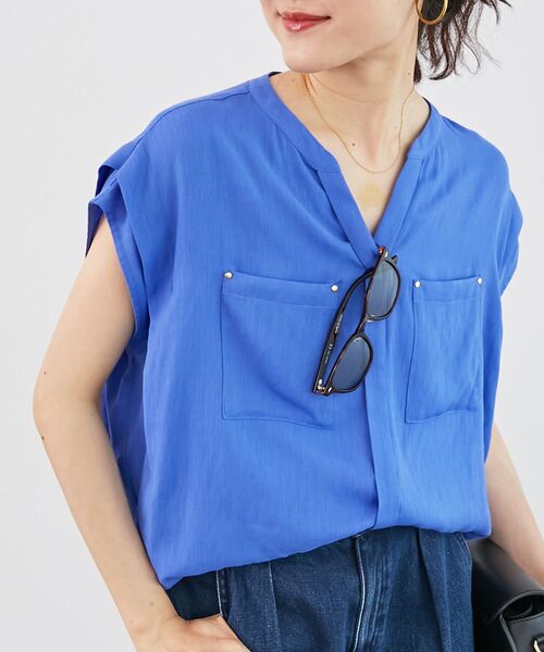 昨年人気だったリネンライクブラウスが今年も登場!ドライタッチなリネンライク素材で仕立てた、ニュアンスのあるシルエットのブラウス。●ポイントポリエステルにレーヨンをミックスした素材で、リネンライクな質感はありながら、柔らかく落ち感のある素材感です。今季は袖口にタックデザインを入れ、サイドからバックにかけてタックを入れることで、バックに立体感の出るシルエットを作っています。体のラインを拾わないシルエットに程よく二の腕が隠れる袖丈で、体型カバーも◎ゆったりとしたサイズ感ですが、着丈や裾まわりはコンパクトにしておりバランス良く着ていただけます。●おすすめコーデ今シーズンはポケットのデザインをアップデートし、トレンドのカーゴポケット風のディテールを取り入れました。同素材のスカートと合わせたセットアップスタイルもオススメです。(3053045815 リネンライクマーメイドスカート)※取り扱いについては、商品についている洗濯表示にてご確認下さい。※照明の関係により、実際よりも色味が違って見える場合がありますまたパソコン・スマートフォンなどの環境により、若干製品と画像のカラーが異なる場合もございます。※商品の色味は、商品アップ画像をご参照ください。【注意事項】・画像の商品はサンプルです。・サイズ表記はあくまで目安となります。実際の商品と仕様、加工が若干異なる場合があります。