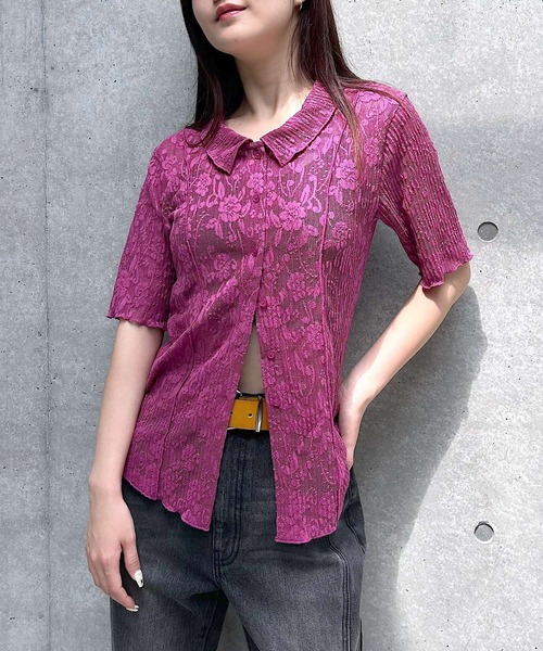 <b><font >\トレンドの程よい透け感が涼しげなプリーツが入った表面感のあるレースシャツ/</font></b> ・コンパクトなシルエットと短めの丈感でワイドシルエットとも相性抜群! ・甘すぎないレースの柄感でカジュアルはもちろん、きれいめにも着こなしやすいアイテムです。 ・すっきりとした襟元とメローを効かせた切替で、より華奢な印象に見せてくれます。 <注意事項> ※サンプルにて撮影をしておりますので、実際の商品とは仕様や加工・サイズ等が若干異なる場合がございます。 ※同商品でも、生産の過程で1~2cmの個体差が生じる場合があります。 ※屋外の光や照明の当たり具合で、実物と色味が異なって見える場合がございます。詳細画像の色味をご確認ください。 なお、商品の色や質感を出来るだけ忠実に再現するよう心掛けておりますが、パソコンなどの環境により、実物と若干異なる場合がございます。 ※写真を許可無くコピー・転用することは固くお断りします。 ▼気になるアイテムは《お気に入り登録》がおすすめです! 完売カラーの再入荷情報、セール情報、ラスト1点の通知を受け取ることができます! ▼《ブランドのお気に入り登録》で新商品や再入荷などのお得な情報をいち早くお知らせします。 ※ご注文いただいた予約商品のお届け時期の確認は、注文履歴ページより行えます。