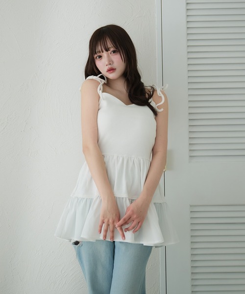 リブニットとシャツがドッキングされたデザインのキャミトップス。 裾に向かってふわっと広がり、体のラインにそったシルエットで女性らしさを演出。 肩のリボンで丈感は調整いただけます。 シンプルなデザインで合わせるアイテム次第で様々なコーデと相性よくご着用いただけます。 --------------------------------------- 生地の厚さ:★★★☆☆ 透け感:オフホワイトは多少あり 伸縮性:あり(バックゴム仕様) 裏地:なし --------------------------------------- 【 Fupel / フペル 】 「Curvy Allure – 纏うたびに、自分が目覚める。」 しなやかな曲線が描く、大人の色気。 無理に飾らず、自分らしさをまとうことで、理想の自分へ。 -オフィシャルInstagramにて最新情報や限定情報を毎日更新中! ▼商品のお気に入り登録 完売カラーの再入荷通知や、ラスト1点、セールの通知をお知らせ致します。 ▼ブランドお気に入り登録 新商品や再入荷など、いち早くブランドの情報を受け取ることができます。 ※サイトに表示されているカラー名と実際のお届け商品に記載されているカラー名が異なる場合がございます。