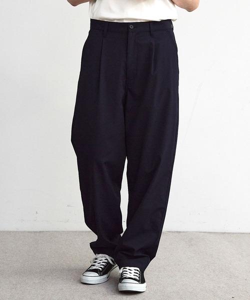 表情豊かなドビーストライプ素材を使用したタック入りワイドテーパードパンツ。上品な光沢感と奥行きのある織り柄が特徴で、大人の抜け感を演出してくれます。腰まわりにゆとりを持たせながら、裾に向かってすっきりとテーパードさせた美しいシルエットで、オン・オフ問わず活躍する一本です。【Rattle Trap/ラトルトラップ】時代と共に変化し続けるライフスタイルにおいてリアルに共存することができるタウンウェア。『ワーク』『ミリタリー』『デニム』をベースに素材とディティールにこだわりを持ちながら今を表現。【画像に関するご注意】※画像はサンプルです。仕様が変更になることがありますのであらかじめご了承ください。※商品の色味につきまして、お客様のお使いのPCのモニター環境、設定により実際のカラーと画像の色味が違って見える場合が御座います。予めご了承の上、ご注文下さい。※屋外での撮影画像は光の加減で、実際の商品より明るく見える場合が御座います。商品の色味は生地アップ・スタジオ撮影の画像をご参考下さい。