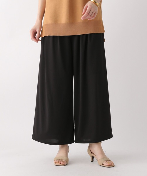 \ラクして、キレイ/ を叶える ※低身長さん向けElkotona(エルコトナ)サイズあり 【悩みに“効く”ポイント】 程よいツヤ感としなやかな落ち感で、足さばきも軽やか。 ストンと落ちるワイドシルエットが、気になるラインもカバー。 きれい見えなのにジャージー素材でストレスフリー。 Tシャツ合わせでも“ちゃんとして見える”優秀パンツです。 【スタイリング】 ・ハイゲージのノースリーブニット×ジャケットで夏のオフィススタイル ・ロゴTEE×スニーカーでリラクシーカジュアルに ・同素材のブラウスとのSETアップもオススメ♪ ひんやり心地よく、シワになりにくい。 上品なツヤと落ち感で、きちんと見えも叶える万能シリーズ。 オフィスにも、休日にも。 あなたの毎日にそっと寄り添う 【お手入れについて】洗濯:洗濯機可 タンブル乾燥:不可 漂白:不可 自然乾燥:日陰のつり干し アイロン:120℃まで可 クリーニング:可(ウェットクリーニングのみ) ※詳細は製品のタグ情報をご確認ください。 ------------------ ・透け感:やや透ける ・伸縮性:あり ・生地の厚さ:普通 ・裏地:あり ※こちらは参考情報となります。カラーにより多少の誤差がございます。 ------------------ 【気になる商品は「お気に入り」登録を】 ハートマークをクリックし、お気に入りに登録すると 在庫残り僅かの通知や、再入荷通知などの情報を受け取ることができます。