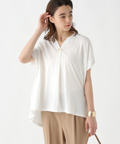 \ラクして、キレイ/を叶える 【悩みに“効く”ポイント】 前から見るとシンプルなのに、 後ろは動くたびに揺れるプリーツデザイン。 さりげないデザイン性が、着るだけで“きちんと感”を演出。 1枚でも主役になる、大人の為のブラウス。 【スタイリング】 ・テーパードパンツに合わせて通勤コーデ。 ・ナロースカートに合わせて女性らしく上品に。 ひんやり心地よく、シワになりにくい。 上品なツヤと落ち感で、きちんと見えも叶える万能シリーズ。 オフィスにも、休日にも。 あなたの毎日にそっと寄り添う ーーーーー・透け感:やや透ける ・伸縮性:あり ・生地の厚さ:普通 ・裏地:なし ※こちらは参考情報となります。カラーにより多少の誤差がございます。 ーーーーー 【気になる商品は「お気に入り」登録を】 ハートマークをクリックし、お気に入りに登録すると 在庫残り僅かの通知や、再入荷通知などの情報を受け取ることができます。