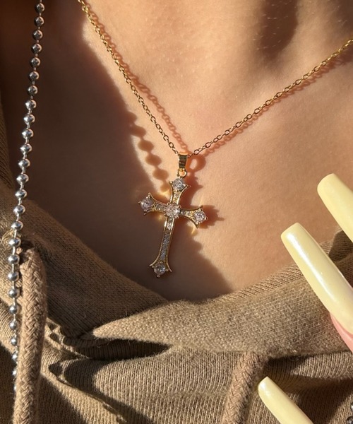 トレンドのクロスネックレスをGOSSIP CLUBらしいストーン×ゴールドで登場!光の反射によってキラキラ輝くので存在感はもちろんですが大ぶりすぎないのでコーデのポイントになります。サイズ調節できるチェーンを使用しているためメンズの方も着用可能です。ペアで着用したり家族、友達、恋人へのプレゼントとしてもオススメ。※屋内での撮影画像や光の当たり具合で色味が異なって見える場合がございます。商品の色味は写真前半のスタジオでの詳細画像をご参照下さい。 [ INTER FACTORY ]2019年2月28日創立時代のニーズに合わせたトレンドベーシックアパレルをベストプライスで展開。クオリティとマテリアルセレクトにこだわった新時代のファクトリーブランド。 ▼商品のお気に入り登録完売カラーの再入荷通知や、ラスト1点、セールの通知をお知らせ致します。▼ブランドのお気に入り登録新商品や再入荷など、いち早くブランドの情報を受け取ることができます。 是非ご利用頂き、お買い物をお楽しみ下さい。