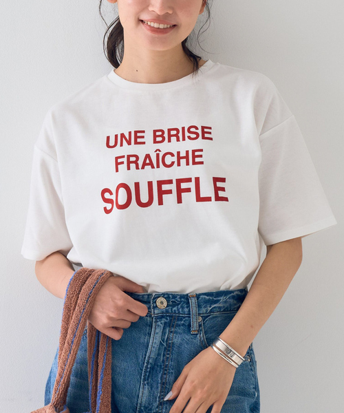 控えめなロゴデザインと上質な色使いが、大人の余裕を感じさせる「UNE BRISE FRAICHE SOUFFLE」。 フランス語で「涼しい風が吹く」というロゴ意味。 夏にぴったりなフレーズです。 柔らかな白ボディに映える、落ち着いたスミクロと ワンポイントになるレッドのロゴカラーが、 カジュアルの中にも洗練された印象をプラスしてくれます。 カジュアルすぎない絶妙なバランスで、 Tシャツ1枚でも“きちんと見え”する 大人のための夏トップスに仕上がりました。 ボディは程よくゆとりのあるシルエットで、 ラフになりすぎず、体のラインをさりげなくカバー。 デニム、スラックス、ナロースカートなど、 合わせるアイテム次第でオンにもオフにも活躍します。 同シルエットのロゴ違いのアイテム(31510420101) 【注意事項】 ※商品画像は、光の当たり具合やパソコンなどの閲覧環境により、実際の色味と異なって見える場合がございます。あらかじめご了承ください。 ※画像の商品はサンプルです。実際の商品と仕様、加工が若干異なる場合があります。 ※サイズ表記はあくまで目安となります。 ※その他の予約商品、通常商品との同時決済はできません。 ※入荷状況により、お届け予定が前後する場合があります。 ※お客様への発送が店頭販売より遅れる場合もあります。 ※追加生産商品は、一部の店舗、通販で販売中の場合がございます。予めご了承下さい。 ※商品を使用前に、タグ等に記載されている「取り扱い上の注意書き」「洗濯表示」を必ずご確認ください。 ※商品に不良が無い場合、包装紙および箱の彼損がございましても発送いたします。あらかじめご了承ください。