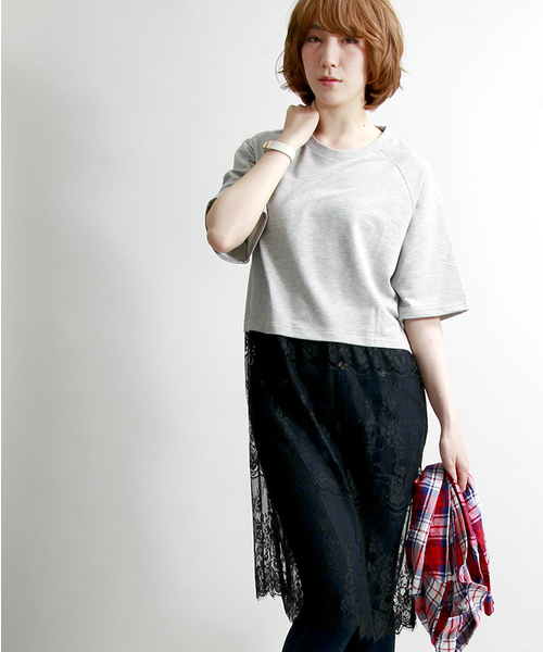 身頃をレース素材で切替えたワンピース。あたかもレイヤードしているかのような遊び心あるデザインが魅力。透け感のあるレース素材の表情が、手軽に着こなしにフェミニンな雰囲気を演出します。一枚で着用頂くのは勿論、インナーとしてお使い頂くのもオススメ。今季はハットやスニーカーなど、小物で遊びを効かせたコーディネートもオススメです。 WEGOの特集ページはコチラ