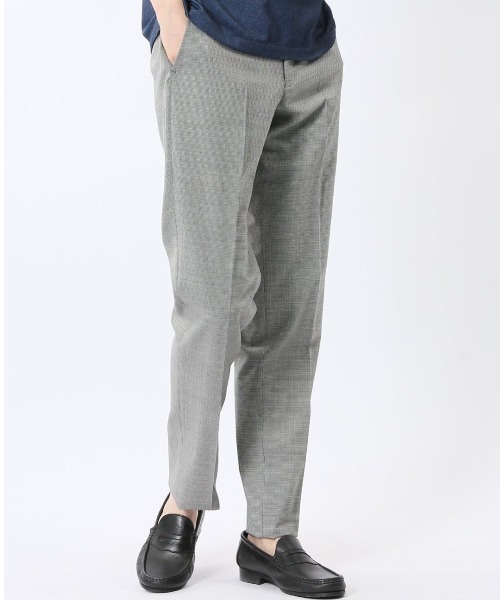 ■素材特徴 ウールにポリエステルを混紡したストレッチ生地を使用しています。細かい千鳥格子柄で落ち着いた印象に仕上げています。 ■機能 【ストレッチ】伸縮性に優れ動きやすく、長時間の着用もストレスフリー。 【マシンウォッシャブル】洗濯機で洗えます。(要ネット・弱水流) ■デザイン すっきりとしたノータックのテーパードパンツです。センタープリーツ加工、フロントファスナー、ベルト通し付き、前後ポケット付き、裾部分は未加工です。 ■シルエット やや細身のスリムシルエットです。股上は浅めで、渡りは程よくスリム感があり、膝下から裾口にかけてテーパードを効かせています。 ■コーディネート タイドアップした綺麗目スタイルから、ノータイでのシャツスタイル、ポロシャツと合わせたオフィスカジュアルまで幅広いスタイリングを楽しめます。上品でありながらも堅苦しさが無く、オンオフ兼用で大活躍してくれます。 フィット感:やや細身 シーズン:夏 展開カラー:シロ×クロ・紺(ネイビー) 裏地:前側膝部分まで有り *アテンションタグ・洗濯ネームを御確認の上、着用又は取り扱い下さい。 *光の当たる場所や高温多湿になる場所での保管は避けて下さい。 *使用の有無に関わらず、経年劣化は進行いたしますのでご了承下さい。 *閲覧デバイス・環境により質感・色味に誤差が生じる場合がございます。 * ZOZOTOWN お買い物ガイド 商品のお気に入り登録 ♡をクリックしましょう!完売カラーの再入荷通知や、ラスト1点の通知、セールの通知をお知らせします。 ブランドのお気に入り登録 新商品や再入荷など、いち早くお得な情報を受け取ることができます。 最短で翌日お届け 商品をカートに入れた後、注文内容の確認ページで「即日配送」を選択していただければ、最短でご注文した翌日にお届け致します。 (ZOZOTOWNお買いものガイドをご参照ください) *裾上げ等のお直しが必要な場合は、ZOZOTOWN納品書をご持参していただき最寄のタカキューグループ店舗までお持ちください。 お直し代金 お直しにかかる期間は店舗によって異なる場合がございますので、詳しくは店舗スタッフまでお問い合わせください。 ビジネス 通勤 面接 就活 リクルート フォーマル 新生活 婚活 記念日 授業参観 参観日 敬老の日 卒入 ハレの日 入学式 入園式 卒業式 卒園式 セレモニー オケージョン ブライダル 結婚式 ウェディング パーティー プレゼント・ギフト ベーシック 定番 20代 30代 40代 アダルト シニア 等幅広いシーンやスタイルに活躍してくれます。