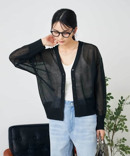 ◆上品な光沢感のあるシアーカーディガン◆ 【デザイン】 ・上品な光沢感のあるシアー素材のVネックカーディガン ・深めのVネックが顔周りをスッキリ見せてくれます ・サラッとしたタッチでストレスフリーな着心地も魅力的 ・ボトムを選ばず、オンオフ着用できます ・軽くて持ち運びがしやすいので、気温が不安定な季節の変わり目の 温度調節に最適な一着です ・ベーシックで使いやすいグレーとブラックの2色展開 【素材】 ・透け感のあるシアー素材 ・光沢感があり上品な印象です ・さらっとした肌触りで着心地の良い生地 【コーディネート】 ノースリーブのワンピースに羽織ったり、 タンクトップやキャミソールに羽織るだけで華やかさをプラスしてくれます。 きれいめなスカートからデニムまで様々なアイテムと相性が良く着回し力抜群です◎ -------------------- 透け感:あり 裏地:なし 伸縮性:あり 光沢感:ややあり 生地の厚さ:薄め -------------------- ≪お気に入り登録機能の使い方≫ ■商品のお気に入り登録(ハートマークをクリック) 再入荷通知や値下げ等、お得なご案内を受けることができます。 -------------------- ※商品画像は、光の当たり具合やパソコンなどの閲覧環境により 実際の色味と異なって見える場合がございます。 商品の色味の目安は商品単体の画像をご参照ください。