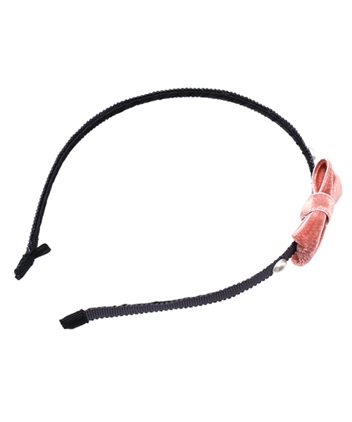 ベルベットリボンと両端に付いたパールがおしゃれなカチューシャ。 本体はグログランテープ巻きです。 おでかけや発表会のイベントなどにも◎ シリーズでネックレスとヘアゴムも!!